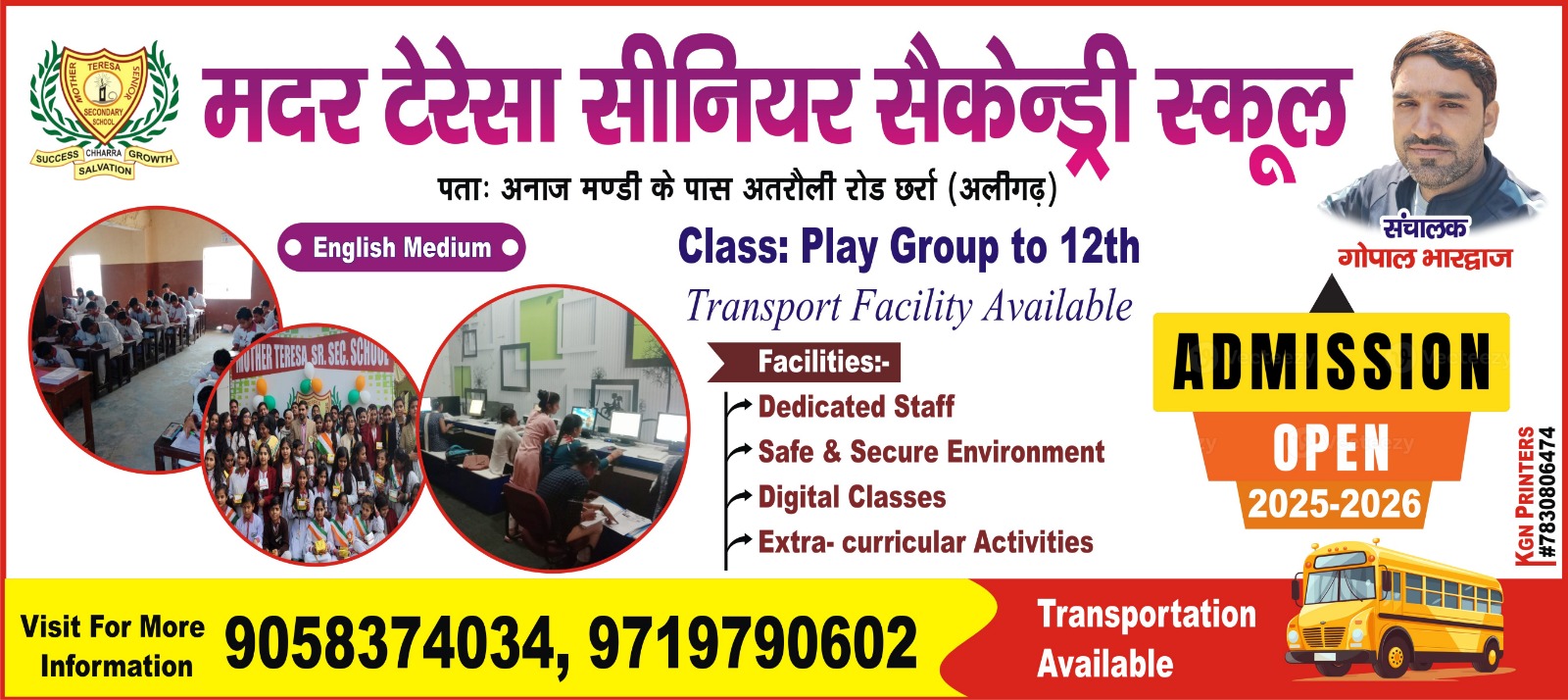 मुझे अत्यंत गर्व और प्रसन्नता है कि Mother Teresa Sr. Sec. School शिक्षा के क्षेत्र में निरंतर प्रगति कर रहा है। हमारा उद्देश्य केवल विद्यार्थियों को पुस्तक ज्ञान देना नहीं है, बल्कि उनके भीतर नैतिक मूल्यों, अनुशासन, आत्मविश्वास और नेतृत्व क्षमता का विकास करना है। हम मानते हैं कि शिक्षा ही वह सशक्त माध्यम है जो एक साधारण बालक को सफल एवं जिम्मेदार नागरिक बना सकती है।