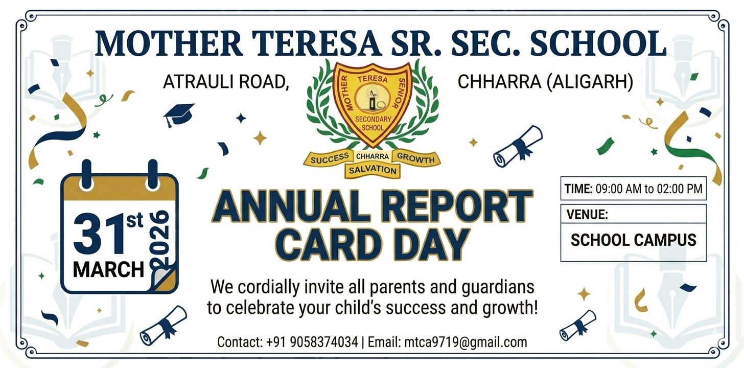 Mother Teresa Sr. Sec. School provides quality education with strong moral values, focusing on academic excellence, discipline, creativity, and overall personality development to prepare students for a successful and responsible future.